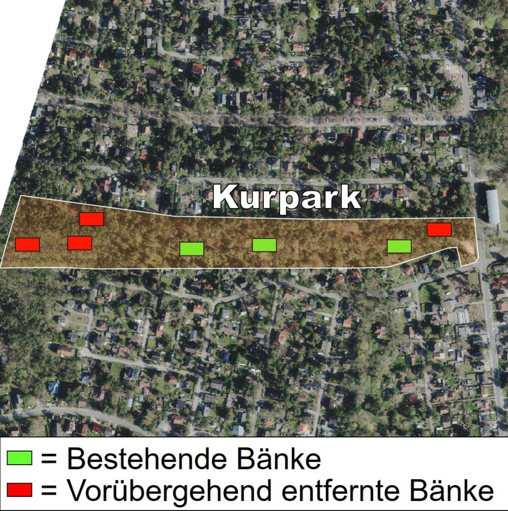 Heute wurden im Kurpark mehrere von der Witterung verschlissene Bänke entfernt.